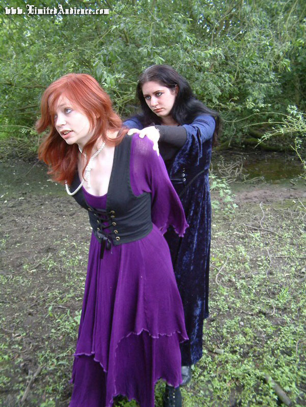 | Once again she tried to raise her sunken head to catch a view, this time succeeding for the briefest of moments. A mirage of trees and bush, clear sky above, and a tall dark figure ahead. It was a lady and despite her blurred vision Brede was sure she recognised her. | She called out. "Catya..." But there was no response. Again she tried, this time able to focus her still weary eyes on the lady dressed all in black ahead. Brede managed to halt the procession on her second call. It was indeed her friend Catya. She was leading Brede along the forest – rope in hand, she turned and smiled before cruelly tugging on the rope once more, forcing Brede to stumble forward. | Brede suddenly became aware of the party – where she had been, and what she’d been doing. A celebration at the manor for two lovers, Jonathan and herself, followed by a toast to the happy couple. Health, happiness and a long life – the last few words she remembered before falling into a deep sleep. | Her captor had become more aware that the effects of the drug, the drug she’d carefully placed in Brede’s drink, were beginning to diminish. The rope became taut as Brede slowly started regaining her senses – tight around her throat from her captors now purposeful stride. She also felt the same course feeling tightly chaffing at her hands behind her back. |